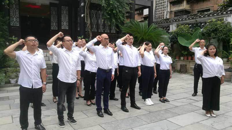 参观结束后,全体共产党员面对鲜红的党旗列队集结,组织开展了新党员入党宣誓和老党员重温入党誓词活动。大家共同唱响《中华人民共和国国歌》,在领誓人党群工作部主任李慧敏同志的带领下,高举右手、庄严肃立,齐声诵读入党誓词:“我志愿加入中国共产党,拥护党的纲领,遵守党的章程……”一声声誓言掷地有声、铿锵有力,在纪念馆上空久久回荡,表达出全体共产党员为共产主义事业不懈奋斗和为公司发展不懈拼搏的诚挚心声。