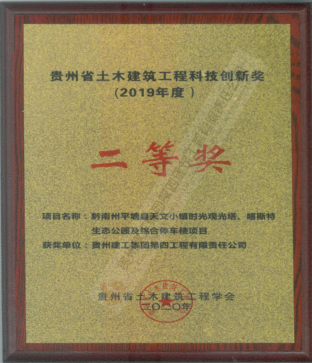 我公司承建的黔南州平塘县天文小镇时光观光塔、喀斯特生态公园及综合停车楼项目荣获贵州省土木建筑工程科技创新奖。