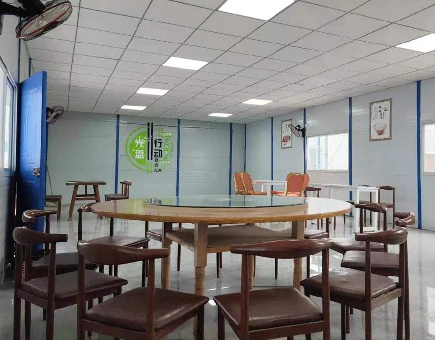 在工地上,生活区更是窗明几净、整洁利落,员工宿舍干干净净、生活用品摆放整齐,给人一种家的感觉,温馨而又宁静。特别值得一提的是,员工食堂除了严格按照相关规定做好安全卫生饮食保障外,还将以人为本的理念落到了实处。食堂根据员工的口味和习惯对当天的菜品进行精心编排、采买和加工,尽量做到每天不重样、口味不单一,针对一些个体员工的口味差异,尽量做到周到照顾、服务到位,让一线员工来得安心、吃得放心、去得开心。在现场的餐盒中,刚刚出炉的各类菜品正冒着热腾腾的气浪,香味久久回荡在空中。蒜苔炒肉、土豆烧肉、炒三丁、辣子排骨、芋儿炖鸡、绿豆芽炒韭菜等家常菜品一字排开,新鲜可口、香气扑鼻。