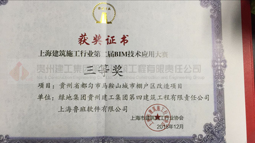 贵州省都匀市马鞍山城市棚户区改造项目荣获上海建筑施工行业第二届BIM技术应用大赛三等奖