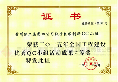 敢于技术创新QC小组获全国工程建设优秀QC小组活动成果二等奖