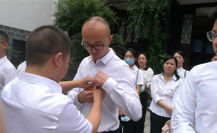 参加活动的公司财务总监陈江同志,总经理助理、纪委副书记、工会副主席武玉珍同志亲自为新党员晏茂文、汪应凰、李照永、周继伟、赵玮、范双等六位同志颁发了《中国共产党章程》、佩戴了中国共产党徽章。新党员代表赵玮同志作了表态发言,畅谈了对党的深刻认识,表达了不忘初心牢记使命、永远为党和人民的事业而奋斗的决心和心声。