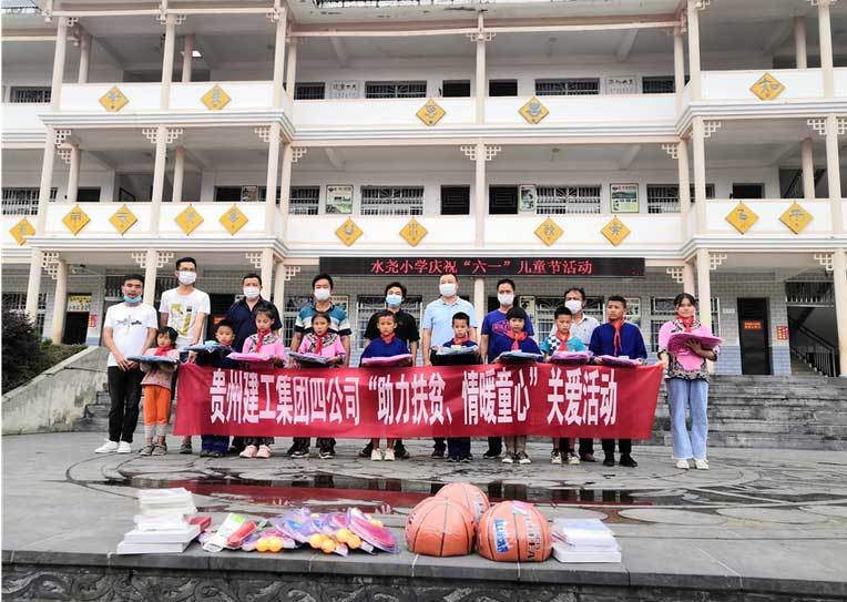 少年儿童是祖国的花朵和未来,在“六一”国际儿童节之际,贵州建工集团四公司荔波项目部组织专门慰问组,带上崭新的学习用品和体育用品会同业主单位、水尧村村支两委前行茂兰镇水尧小学开展“庆六一”助力扶贫、情暖童心活动,为当地贫困儿童送上了节日的祝福。