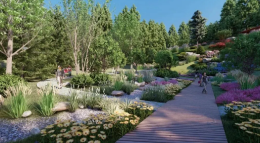 项目建成后,将为贵阳市民提供一个生态、休闲、文化、健身等功能的良好去处,对于丰富人们的业余文化生活增添更加亮丽的色彩。公园山体部分共有东南西北四个出入口,主要有登山栈道、童趣山谷、森林驿站、南城驿站、攀岩体验墙等休闲运动业态。公园滨河部分位于麻堤河、小黄河、花溪河的交汇处,结合经开区智慧城市发展特色建设亲水、娱乐、科普、体验、休闲集一体的智慧公园。